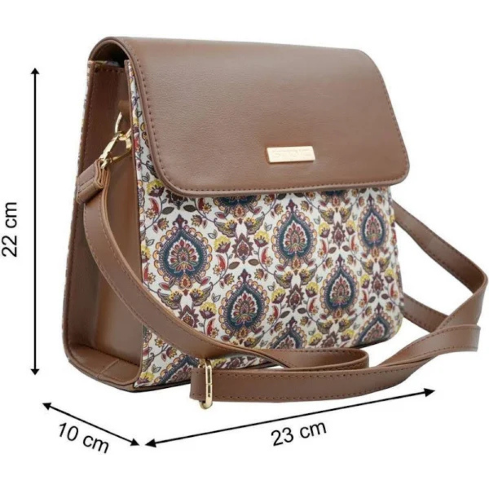 > MINIMALIST DESIGN: Keeping in mind the daily usage of an average indian women, It consist of one large open compartment which can comfortably fit all your daily essentials such as notepad, files charger, powerbank and much more.It also includes an inner zipper pocket to safety keep your valuables such as wallet, keys, mobile devices etc
